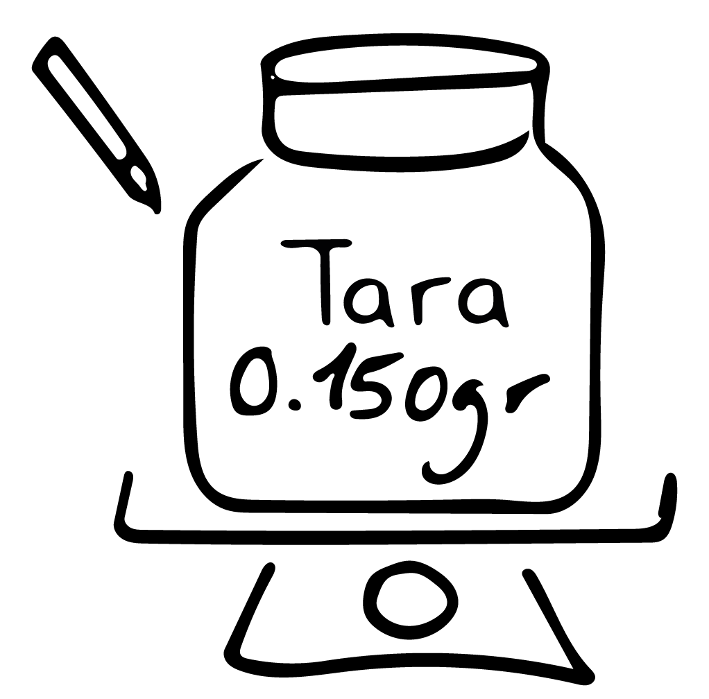 Zuerst wiegt ihr eure leeren Behälter auf unserer Kundenwaage und notiert das Gewicht auf dem Gefäß.